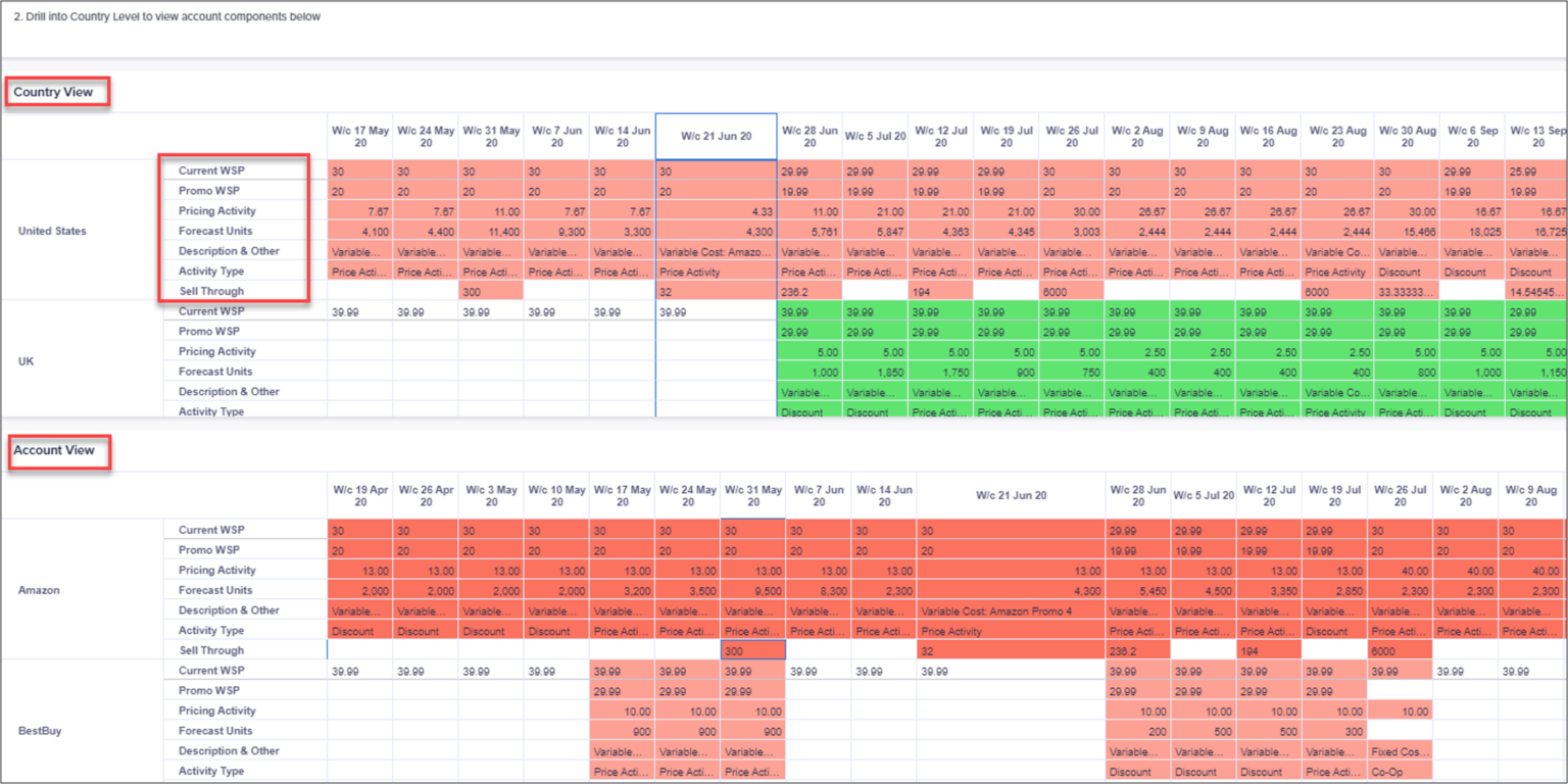 Provide a one-stop, real-time view of Forecast Units, Promo Units, Sell Through and Claims for various products level, channels, and time periods.